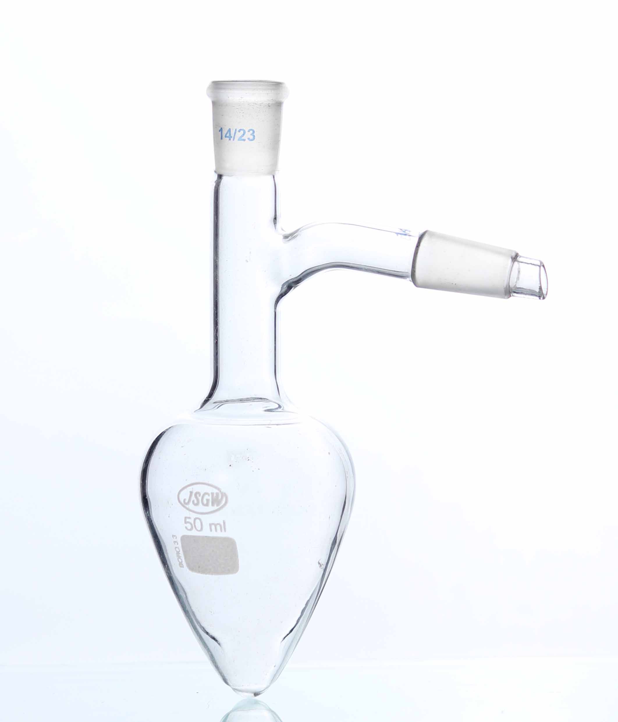 175 Flasks Pear shaped, Vigreux with side neck.